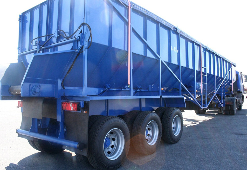 Полуприцеп-самосвал с с донным транспортёром. Для перевозки картофеля и других сельскохозяйственных культур с удельной плотностью не более 0,8 т.куб.м.