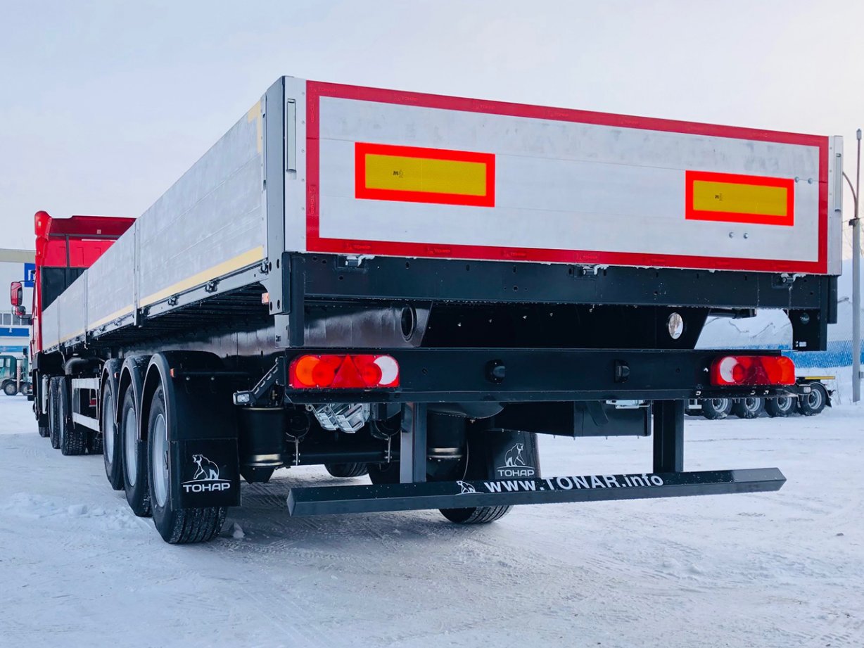 Отгружен бортовой полуприцеп Тонар B3-13/K в обновленном исполнении с алюминиевыми бортами, в базовой комплектации полуприцеп укомплектован стаканами под коники в количестве 22 шт.